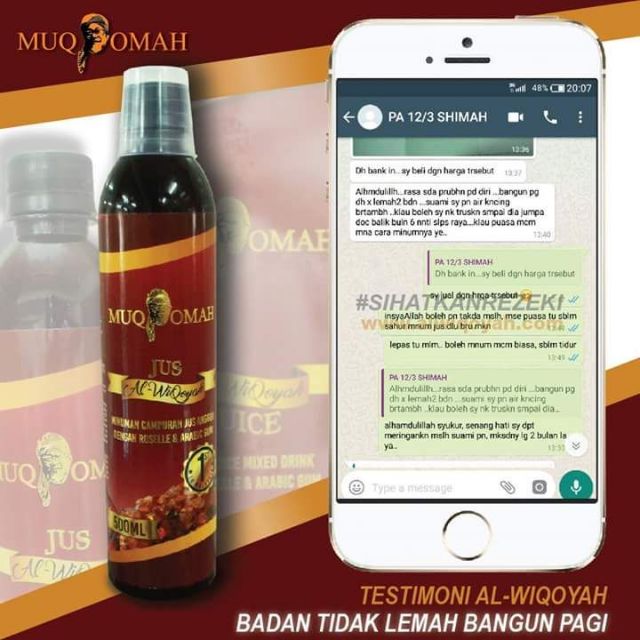 TRUSTED DEALER JUS AL WIQOYAH601170300650httalwiqoyahwasapmy About Press Copyright Contact us Creators Advertise Developers Terms Privacy Policy Safety How. Dalam kajian fakta sudah terbukti berkesan yang bahan-bahan ini amat membantu dalam proses mengembalikan kestabilan buah pinggang. Jus Alwiqoyah merupakan Jus berasaskan Arabic Gum Pertama Di Malaysia.
