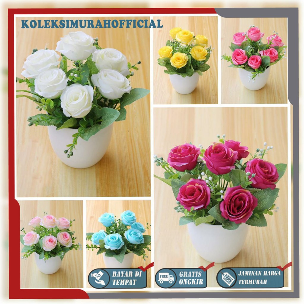 Jual Bunga Plastik Murah Bunga Hias Mawar Artificial Hiasan Bunga Plastik Mini Dgn Pot Unik Bunga Tiruan Vb51 Di Lapak Benowo Id Bukalapak